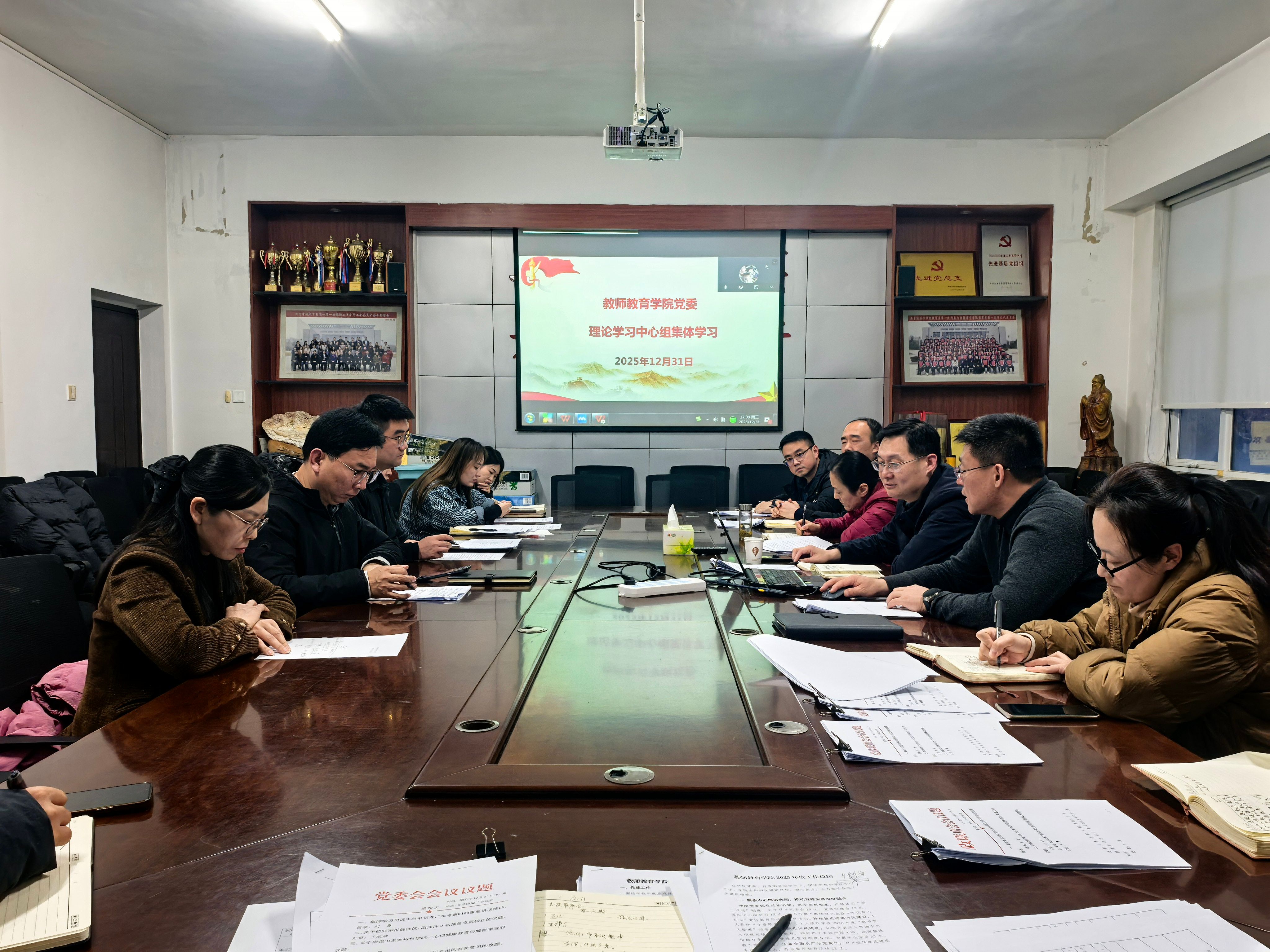 学院党委书记刘勇主持党委理论学习中心组集体学习并作总结。会上,中心组成员集体学习《中共中央关于制定国民经济和社会发展第十五个五年规划的建议》,刘勇就党的二十届四中全会精神进行宣讲,副院长贾英侠、王帅作重点发言。刘勇主持党委会,会议落实“第一议题”制度,学习了习近平总书记在广东考察时的重要讲话精神,审议了《2025年度发展目标任务完成情况统计表》《关于加强有组织科研、助推科研产出的有关意见》等议题。随后召开的党政联席会上,与会人员研究了《教师教育学院2025年工作总结与2026年工作计划》等事项。