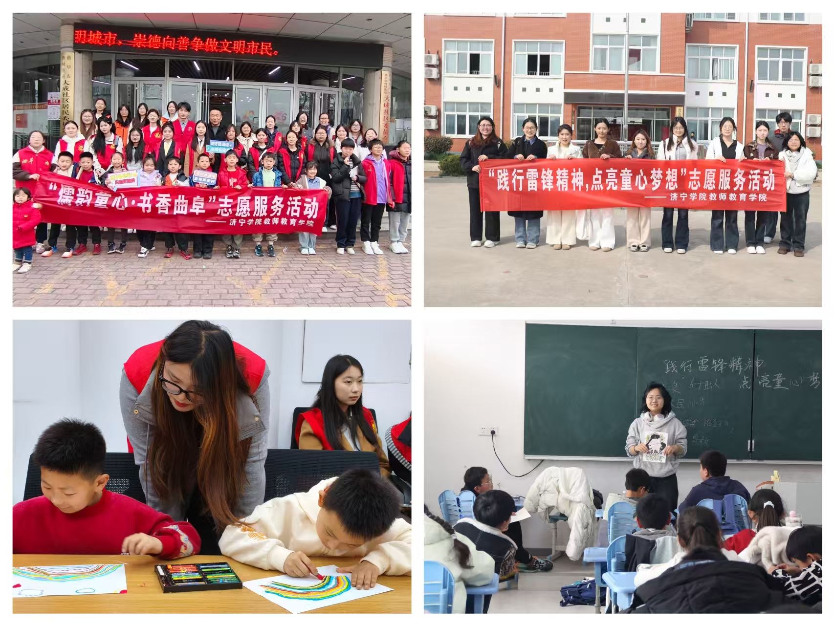 为深入弘扬和传承新时代雷锋精神,2026年3月,教师教育学院团委组织各专业志愿者,围绕“赓续雷锋精神,青春志愿同行”主题,在曲阜市大成社区党群服务中心、杏坛小学等地开展系列志愿服务活动。